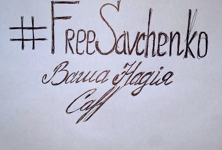 Nadiya Savchenko’s signature on a letter the first time she became aware of the #FreeSavchenko twitter campaign. In Ukrainian it says “Your Nadiya.”
