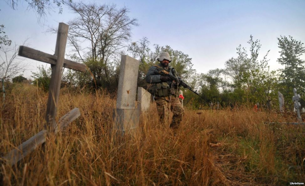 Ukrainian soldier patrolling a section of the “gray zone” (neutral zone). Donetsk oblast, October 1, 2015. Source: Radio Svoboda