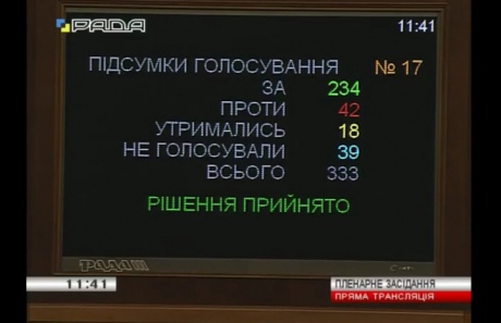The Parliament has passed on its second reading of Bill 3442 on amendments to the Labor Code of Ukraine (concerning the harmonization of legislation in the sphere of combating discrimination with the law of the European Union). [It passed with 234 votes].