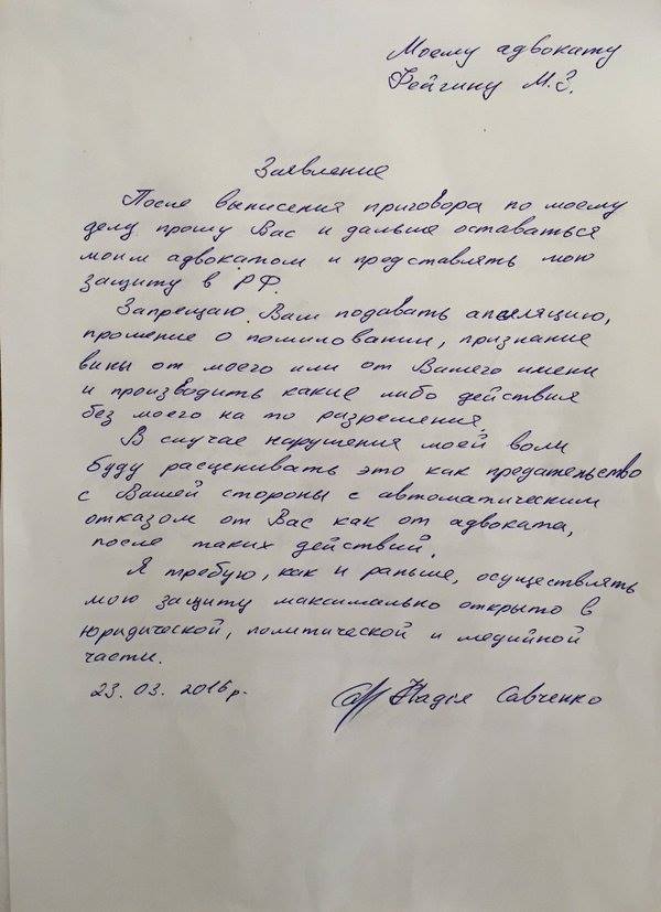 23.03.2016 [signed] Nadiya Savchenko