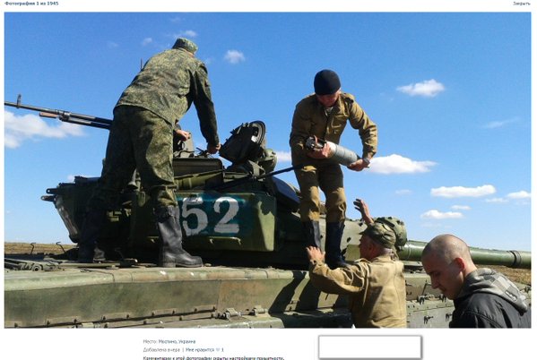 Russian tanks in Mospyne, April 6, 2016. Source: https://twitter.com/VidaLSorokin/status/718137616844132357
