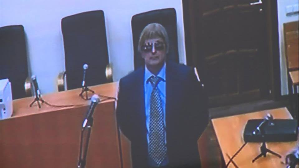 Witness “Alexei Pochechuyev” in a gray wig and dark glasses in Voronezh court. Photo source: Anton Naumlyuk via Alyona Shevchuk.